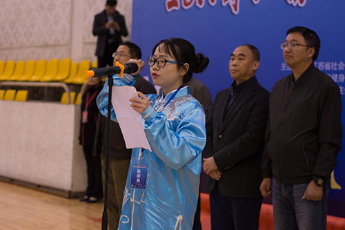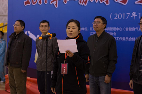 开幕式上,我校党委副书记、副院长王荣在致辞中表示,希望气功能深入校园,弘扬体育文化,帮助学生健全人格,磨砺奋斗精神。运动员代表和裁判员代表随后进行宣誓。江苏省体育局社会体育管理中心书记、省气功办主任赵玉坤在致辞中对健身气功做了生动的诠释,并希望通过院校交流比赛的形式,让健身气功更快地深入校园,让广大学生感受健身气功的魅力,身心得到发展。